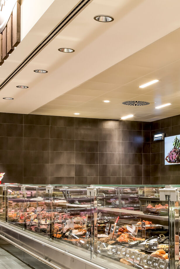 Airblock FG имеет специальное применение в Хазельхюнне. Плоский прибор для обогрева, охлаждения, вентиляции и фильтрации используется в супермаркете EDEKA для гигиенического экранирования прилавков для свежих продуктов. Воздух забирается за прилавком и подается с избыточным давлением через вентиляционные отверстия перед прилавком. Во входной зоне супермаркета посетителей встречает воздушно-тепловая завеса Tandem, а также два тепловентилятора Ultra. Тепловентиляторы TOP используются для обогрева складских помещений.