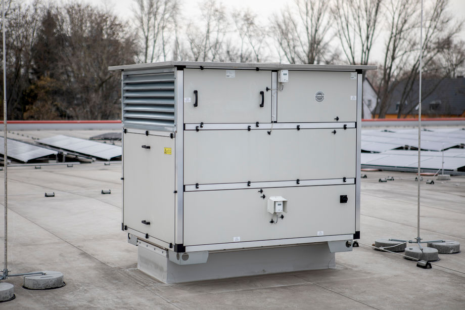 Вентиляционные установки KaCompact были транспортированы на вертолете на большепролетную крышу. Не потому что приборы были слишком тяжелые, а из-за размера площади крыши. Кран с соответствующим плечом рычага из-за его веса нельзя было поставить при строительстве. Вентиляционные установки KaCompact, напротив, благодаря своей конструкции имеют легкий вес.