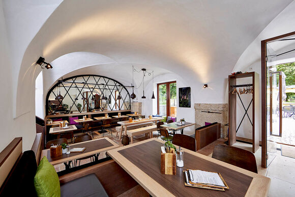 В замке Хельбрунн конвекторы, установленные перед большими окнами в новой столовой и в гостиной, обеспечивают эффективную защиту от холодного воздуха. Бронзовые анодированные решетки прекрасно сочетаются с интерьером в "деревенском" стиле.
